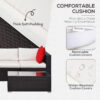 Our five-piece rattan patio sectional set brings the comforts of the living room to the backyard. Everything is there: a couch composed of two corners and a center section, an ottoman footrest, and a tempered glass table. Enjoy perks like throw pillows, thickly padded cushions, and a place to put your feet up in the great outdoors. Offering a home base for outdoor activities, it easily becomes the icing on top of pool parties, picnics, and backyard barbeques. Get out, get comfy, get [BRAND NAME].