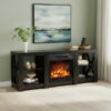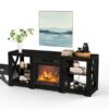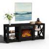 58 Inch Black Double-Sided Cross Fireplace Cabinet With 18 Inch Fireplace Core, 149 * 40 * 60cm Freestanding Fireplace Console quantity