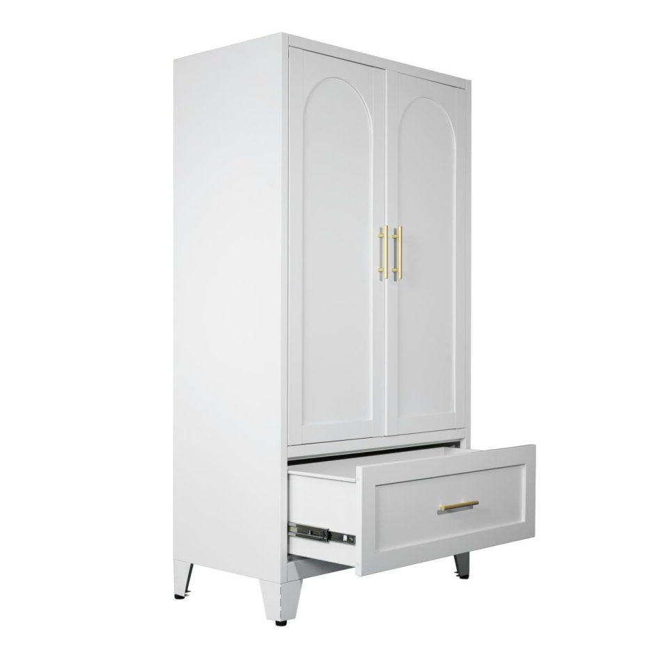 60inch Tall Metal Wardrobe Cabinet With 1 Drawer And Hanging Rod, 2 Doors Wardrobe Closet With Shelf For Bedroom, Office, Laundry Room,Entryway ,Foyer,Guesthouse White