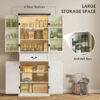 Illuminate your culinary space with the [BRAND NAME] kitchen pantry. This pantry features an upper cabinet with a motion-sensing LED light with customizable brightness and color temperature. Stay organized with two three-tier cabinets, adjustable shelves, and six door racks to suit your storage needs. With its farmhouse-style charm and rustic white wood grain finish, this food pantry cabinet complements any home decor.