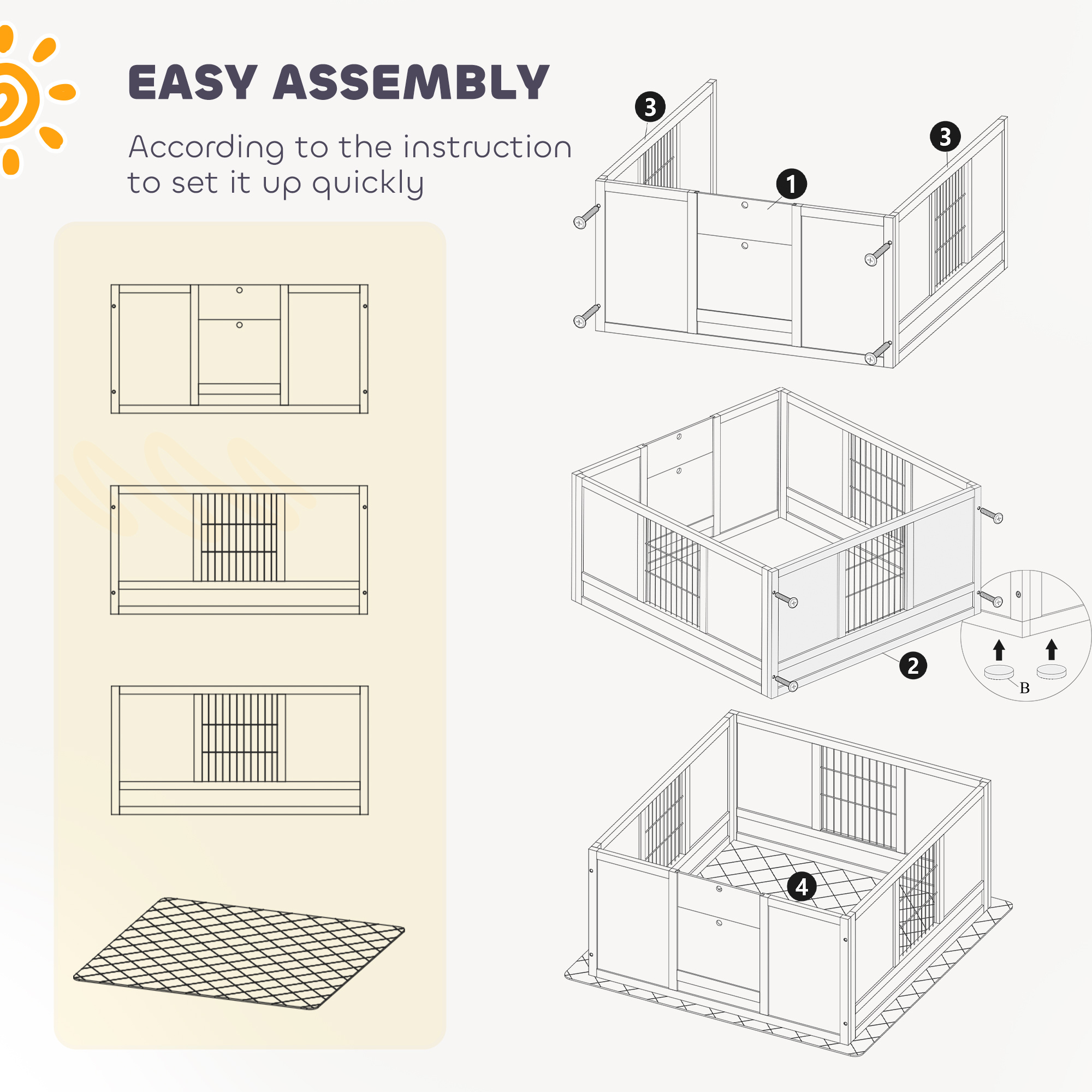 Discover the [BRAND NAME] Dog Whelping Box, a cozy haven for your expecting furry friend! Adjustable entrance heights and removable panels keep puppies safe while allowing mom easy access. Crafted from pine wood and MDF with a metal mesh panel, it ensures breathability and stability. Plus, the included waterproof pad makes cleanup a breeze. Suitable for large breeds and below.
