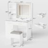 Makeup Vanity Desk With Mirror And Lights, White Vanity Table With Power Outlet And 3 Lighting Modes, Dressing Table Set With Cabinet Drawers Shelves And Storage Stool For Bedroom