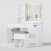 Makeup Vanity Desk With Mirror And Lights, White Vanity Table With Power Outlet And 3 Lighting Modes, Dressing Table Set With Cabinet Drawers Shelves And Storage Stool For Bedroom