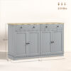 Transform your space with the sideboard from [BRAND NAME], a versatile gem that serves as a kitchen storage cabinet, media console, or entryway cabinet. It keeps essentials tidy with a 55.1″ wide tabletop suitable for appliances, two spacious drawers and cabinets with adjustable shelves. Its modern oak wood grain and solid color blend seamlessly into any decor, making organization stylish and simple.