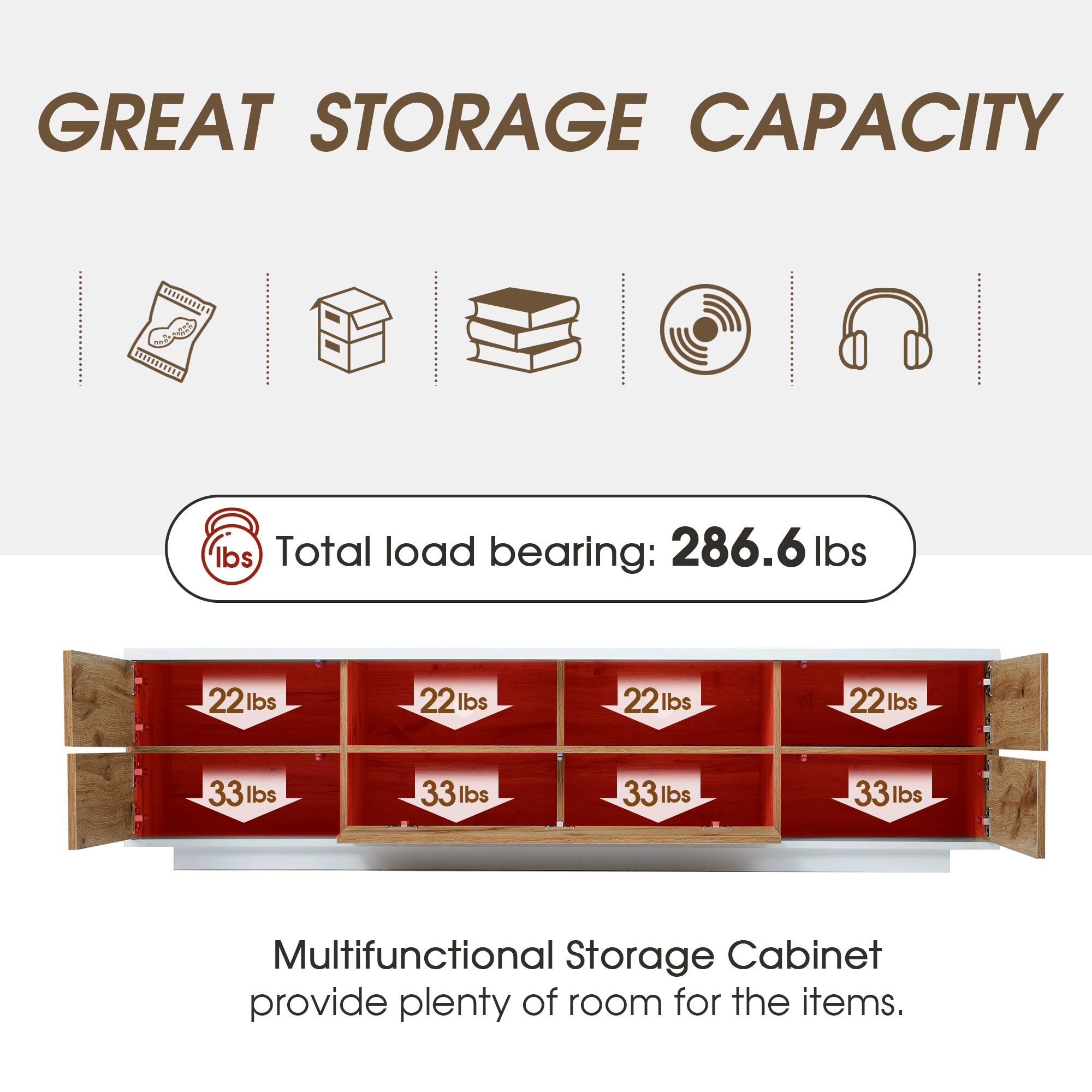 - [ Multi-Purpose Cabinet & Concealed Storage ] This TV cabinet is a storage master. We designed this modern TV cabinet with lots of storage space. In addition to the TV, you can also put TV components, game accessories, books, decorations and so on in variety lockers .