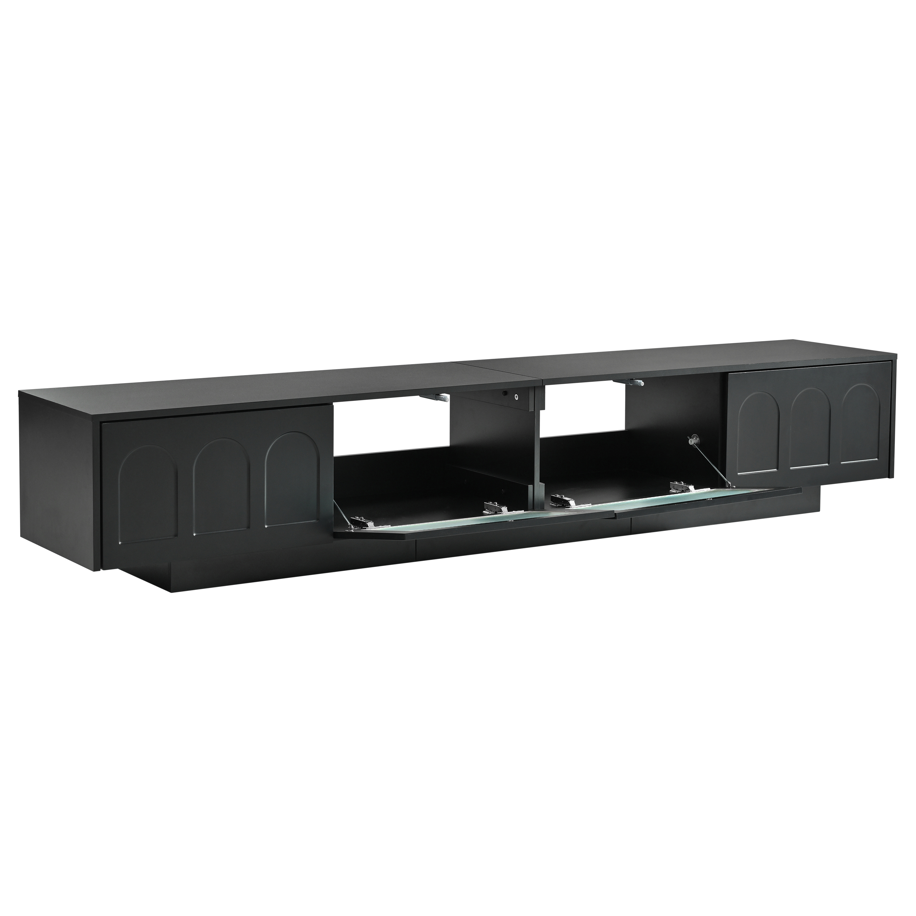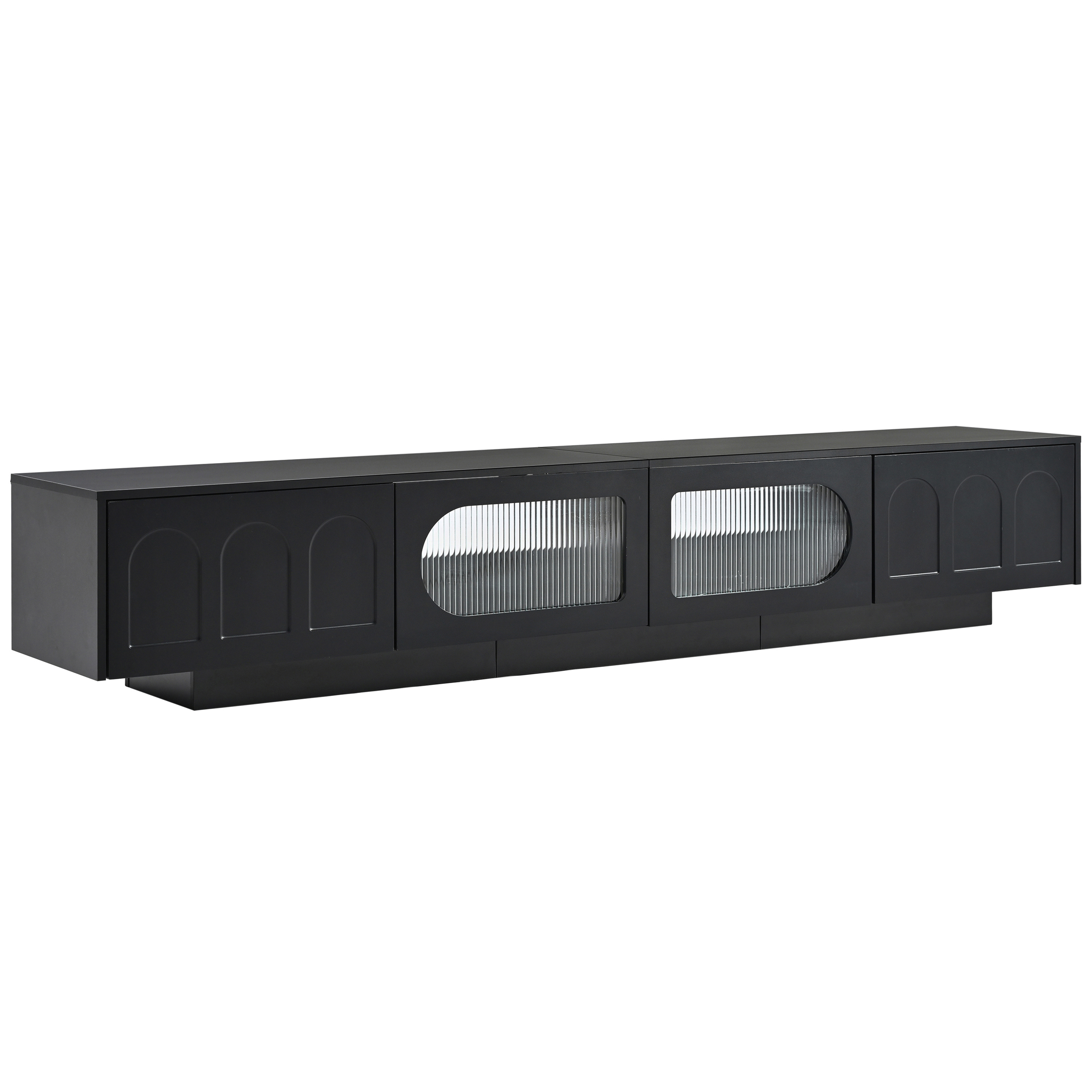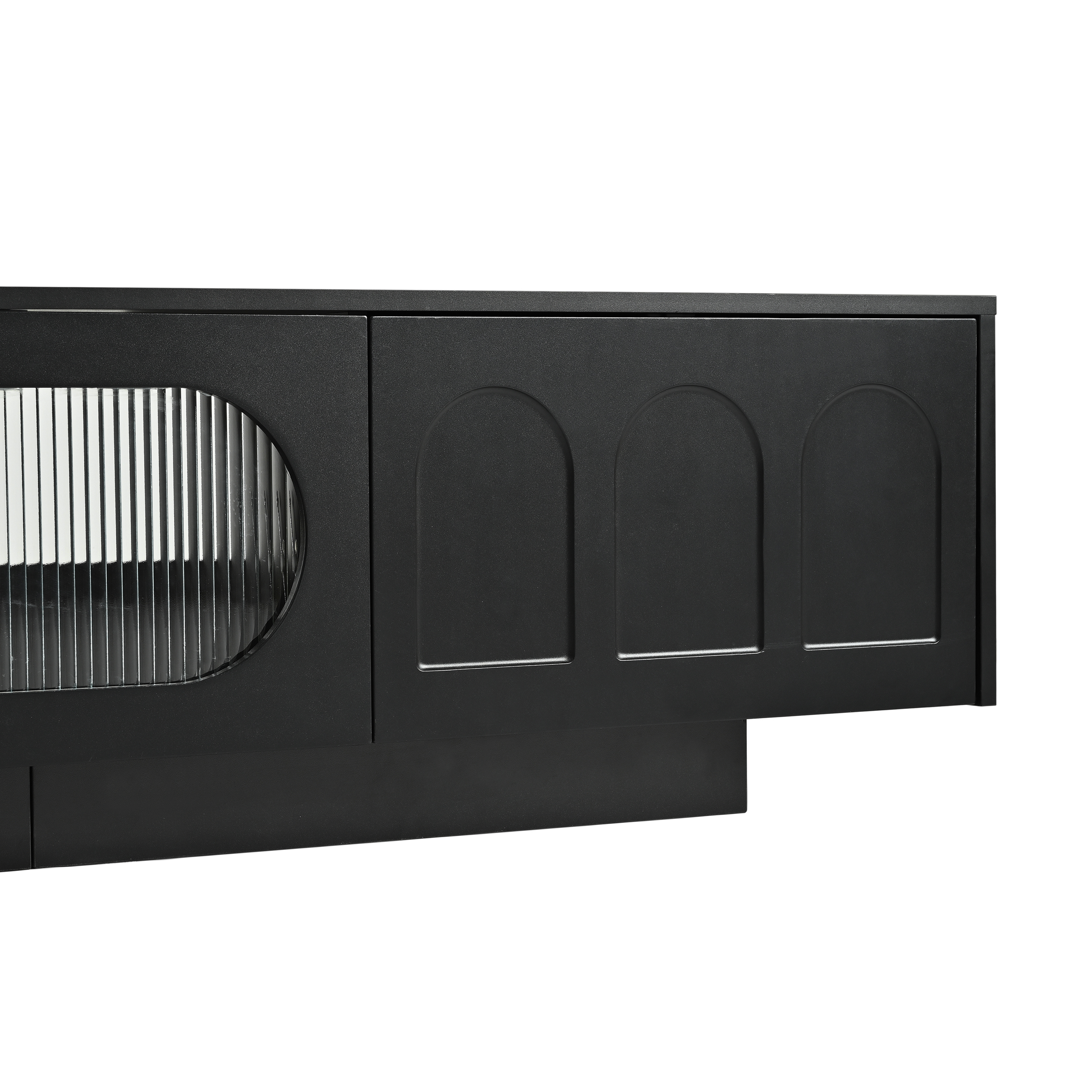 Product Name:ON-TREND TV Stand with Fluted tempered Glass Doors for TVs Up to 95”, Functional Media Console with Arched Cabinet Doors, Entertainment Center with APP-Controlled LED Light for Living Room, Black