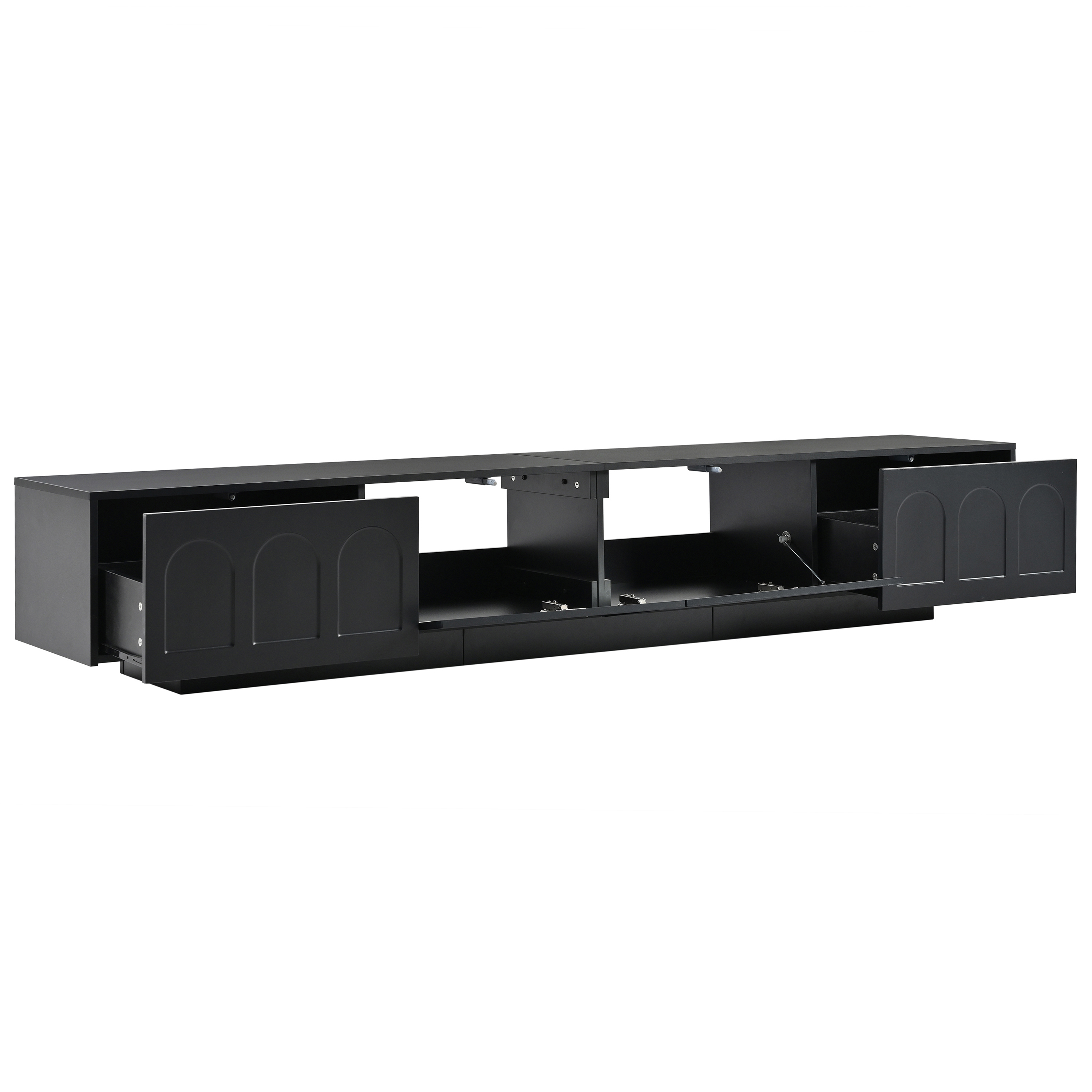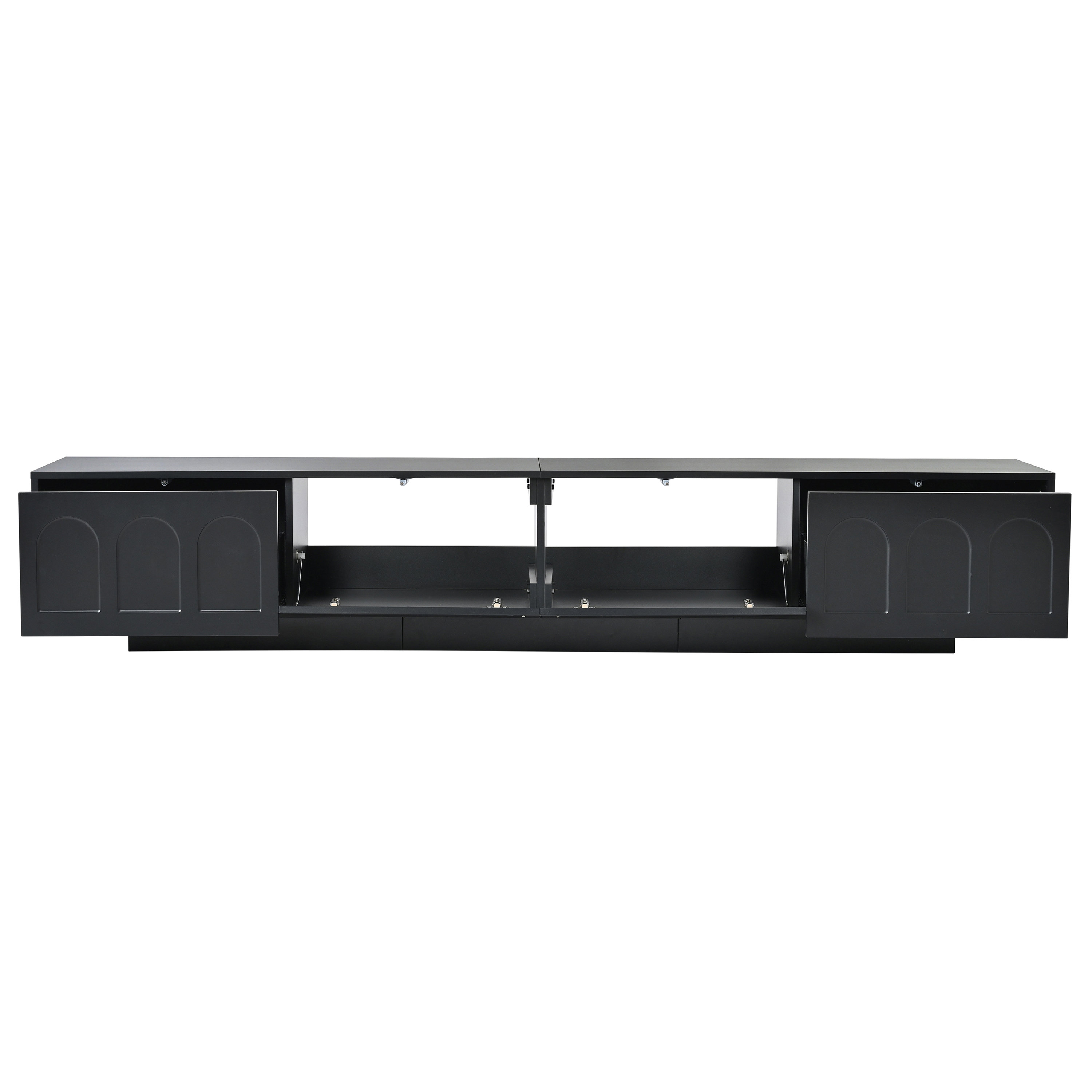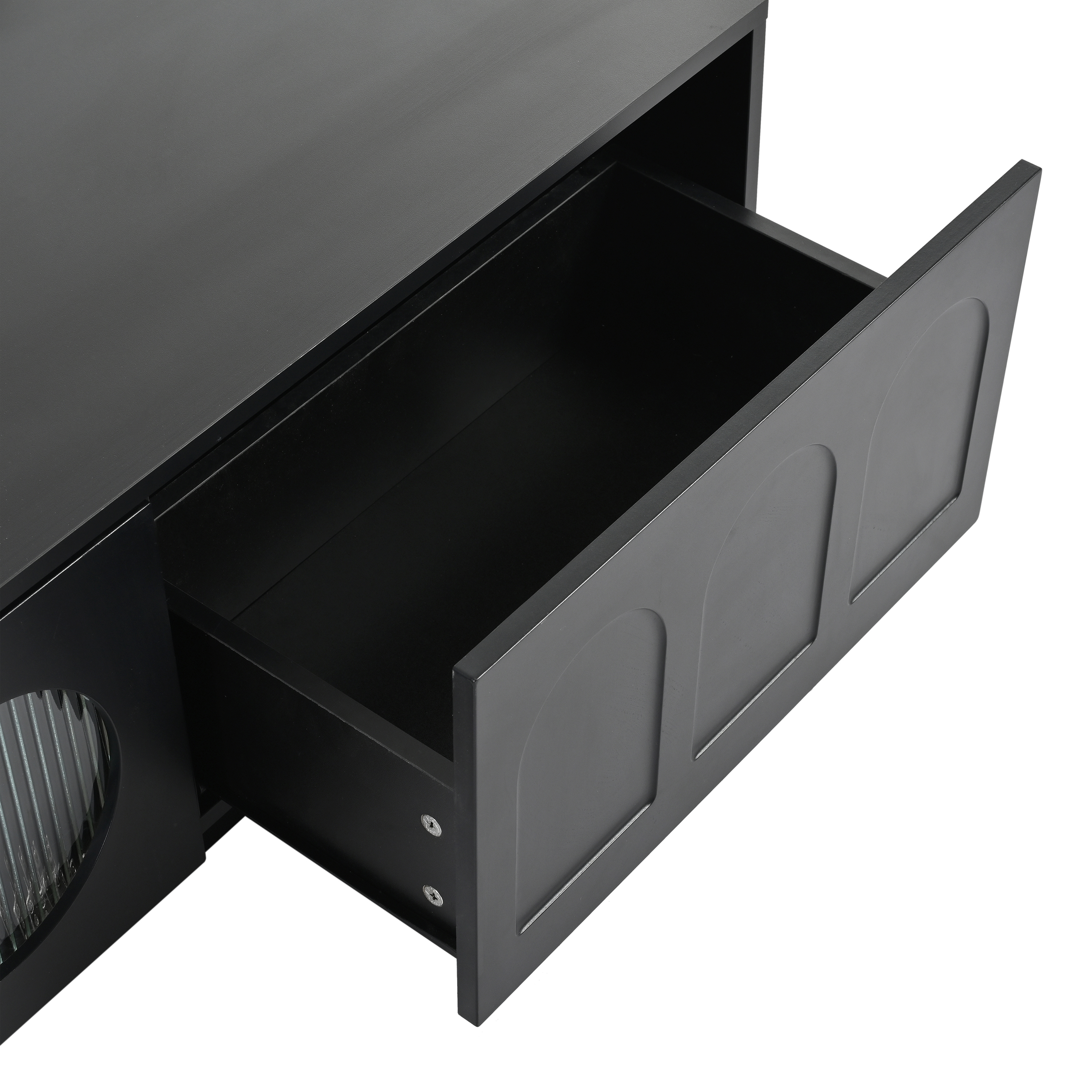 Product Name:ON-TREND TV Stand with Fluted tempered Glass Doors for TVs Up to 95”, Functional Media Console with Arched Cabinet Doors, Entertainment Center with APP-Controlled LED Light for Living Room, Black