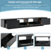 Equipped with two drawers and two spacious 20”W cabinets, this TV stand keeps your home free from clutter, providing you with a sleek and tidy living space. Additionally, without the limitation of the back board, this product allows you to organize the wires of audio-visual equipment effortlessly.