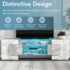 Product Name:ON-TREND Unique Shape TV Stand with 2 Illuminated Glass Shelves, High Gloss Entertainment Center for TVs Up to 88″, Versatile TV Cabinet with LED Color Changing Lights for Living Room, Grey