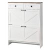 Large Storage Capacity: Features 2 flip drawers, and each drawer has two storage layers. The top surface can hold decorations or vases, while the bottom for slippers. Additionally, 2 pull-out drawers provide space for keys, wallets, and other small items