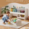 Toy Storage Organizer, Wooden Kids Bookshelf With Storage, Toy Storage Cabinet With 2 Mobile Drawers, Kids Storage Organizer For Bedroom, Nursery, Living Room, Entryway, Preschool, White